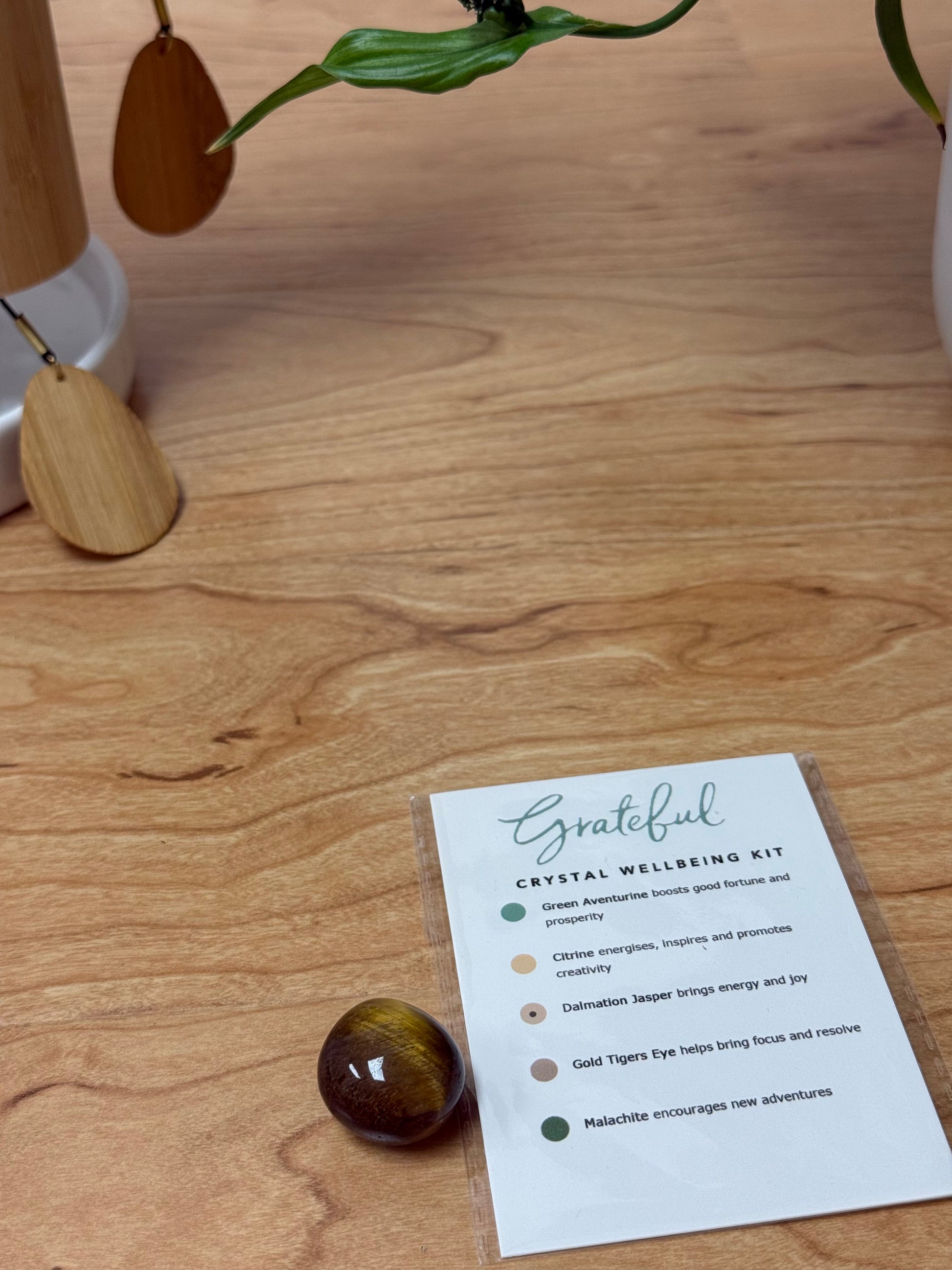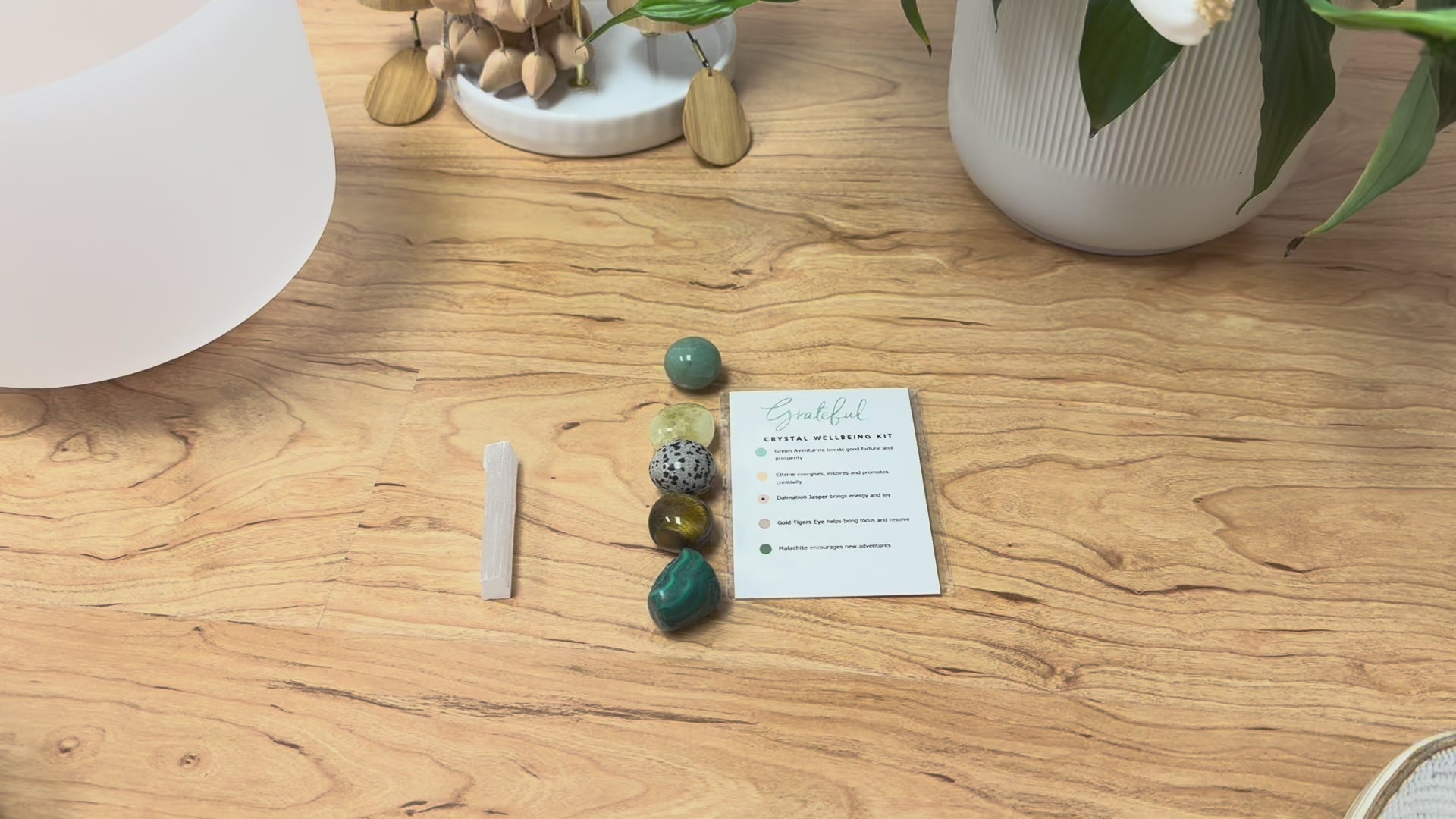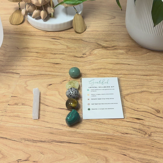 Grateful Crystal Kit | Positivity, Prosperity & Manifestation | Aventurine, Citrine, Jasper, Tiger’s Eye, Malachite, Selenite