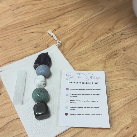 The So… To Sleep Crystal Wellbeing Kit is designed to help you unwind, let go of stress, and prepare your body and mind for deep, rejuvenating sleep. With this set of calming and sleep-enhancing stones, you can say goodbye to restless nights and welcome peaceful, restorative sleep into your life.