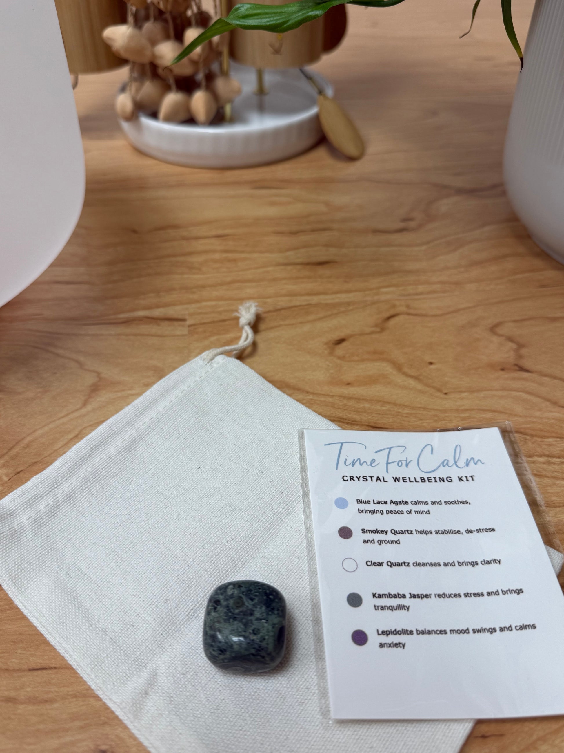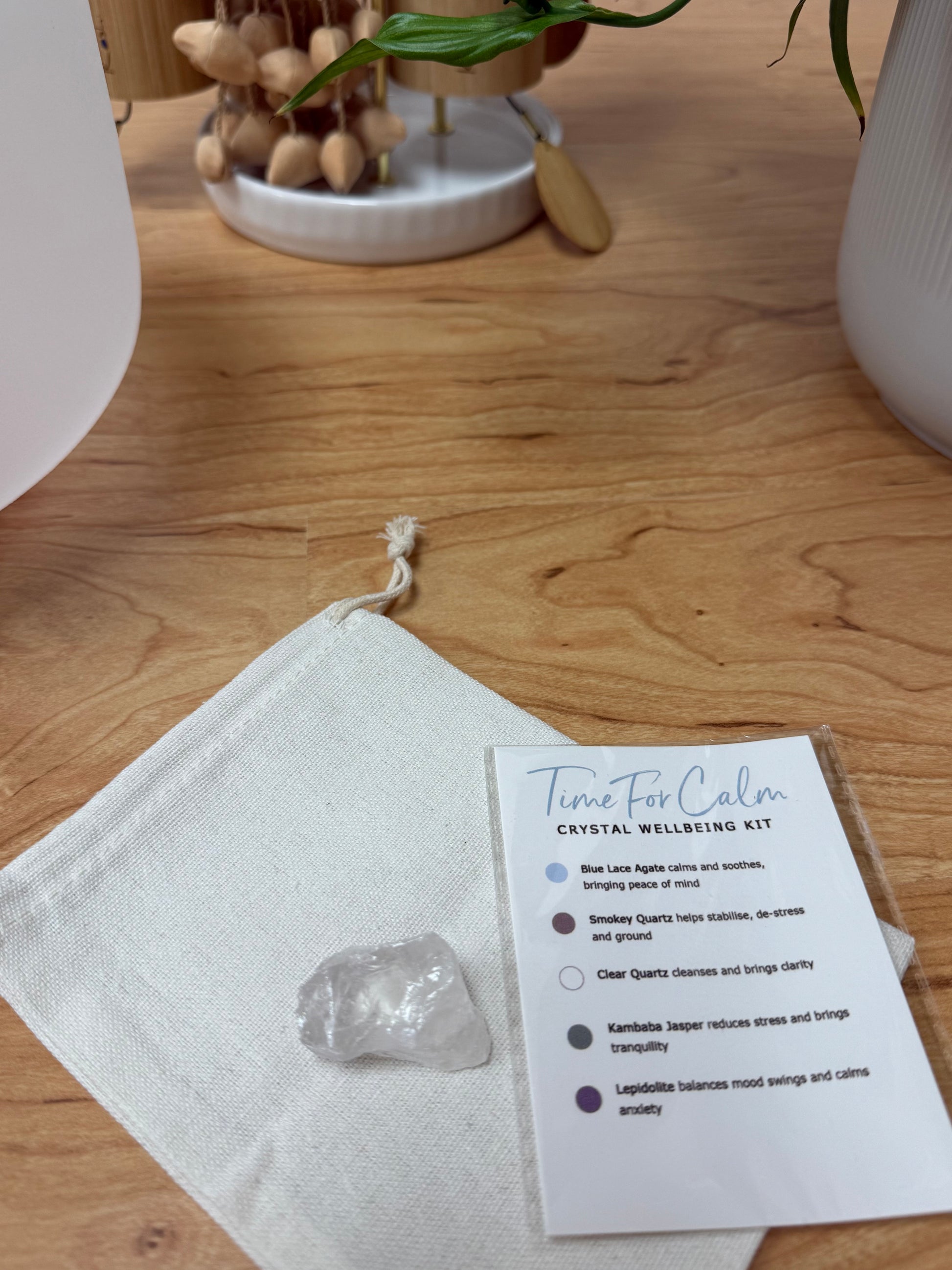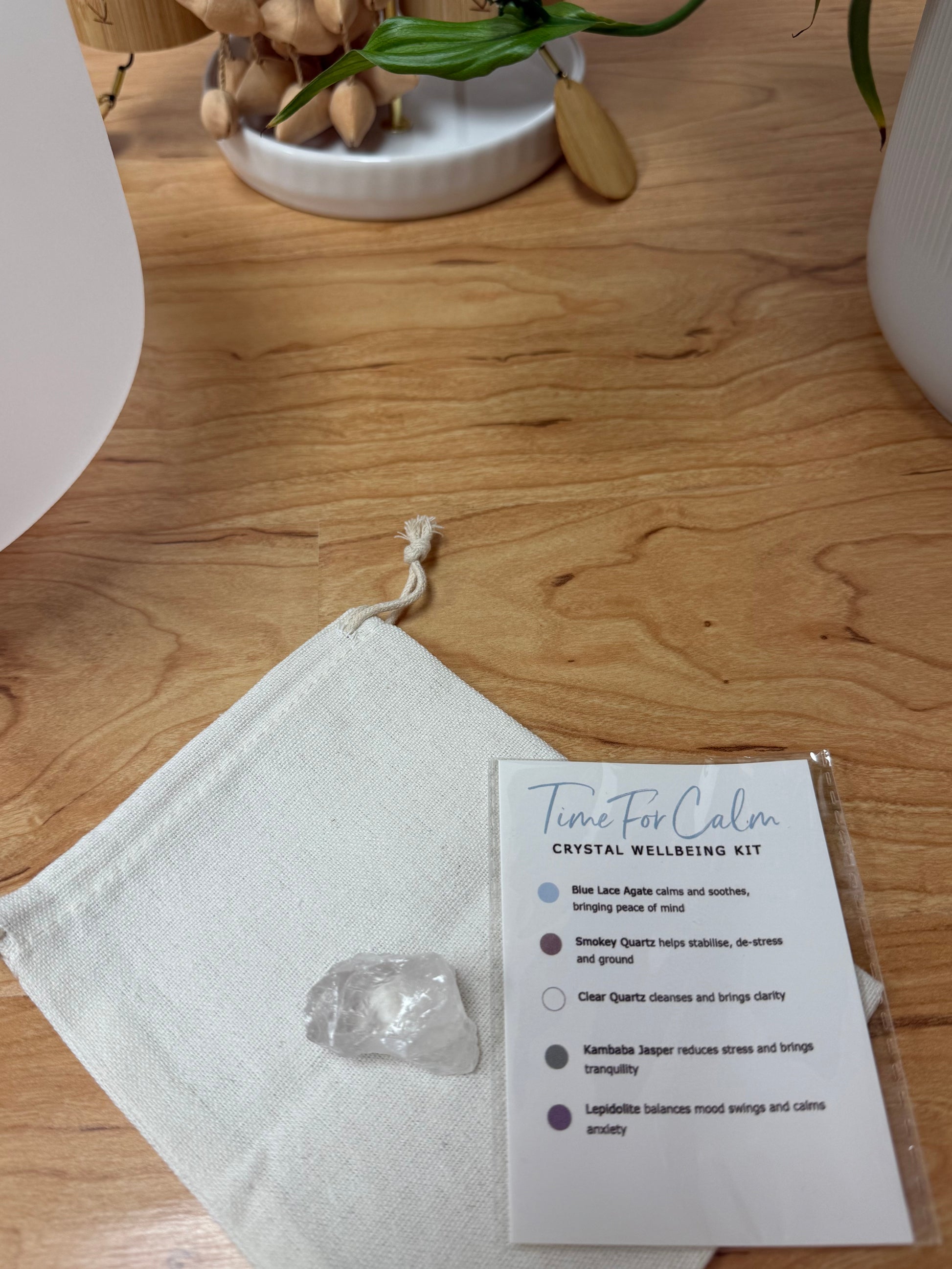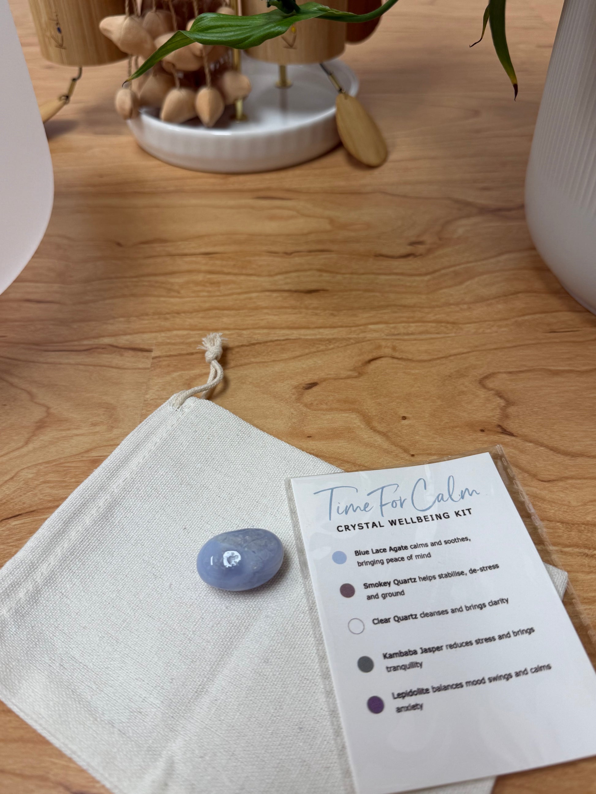 Stress Relief & Anxiety Support | Time For Calm Crystal Kit | Blue Lace Agate, Smokey Quartz, Clear Quartz, Jasper, Lepidolite, Selenite