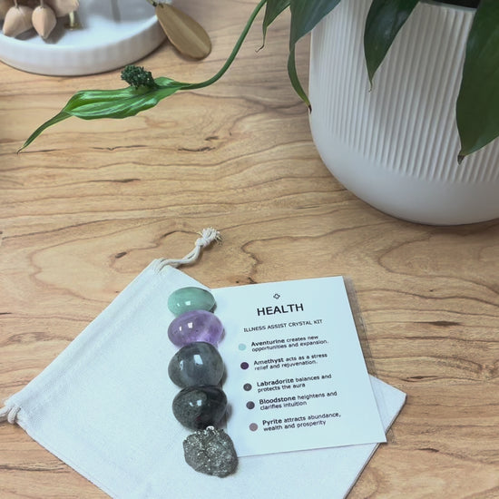 Wellness, Energy & Healing Support | Health Crystal Kit | Aventurine, Amethyst, Labradorite, Bloodstone, Pyrite