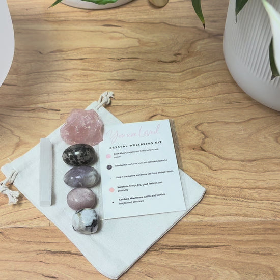 The You Are Loved Crystal Wellbeing Kit is a gentle yet powerful reminder that you are deserving of love, whether from yourself or others. These beautiful stones are here to support you on your journey of healing, nurturing, and embracing the love that exists within and around you.